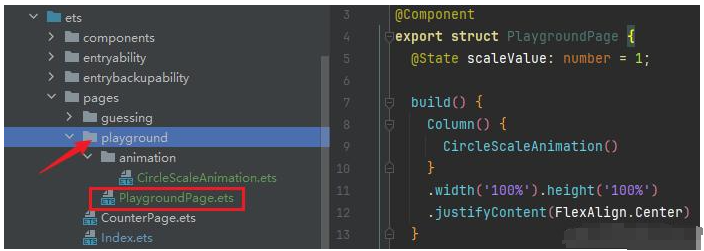 在学习一项技术过程中会写一些小的案例,我喜欢建一个 playground 的文件夹,在其中写一写简单独立的小功能。比如这个小球缩放的动画,通过 CircleScaleAnimation 组件来展示: