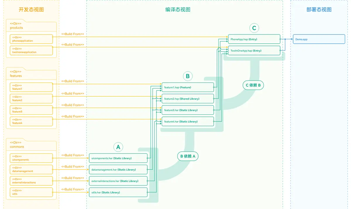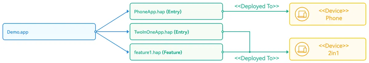 在部署模型中,每个Entry类型的HAP代表了应用的入口点,而Feature类型的HAP则包含了应用的特定功能模块。允许应用能够以模块化的方式适配和部署,从而满足不同设备和场景的需求。