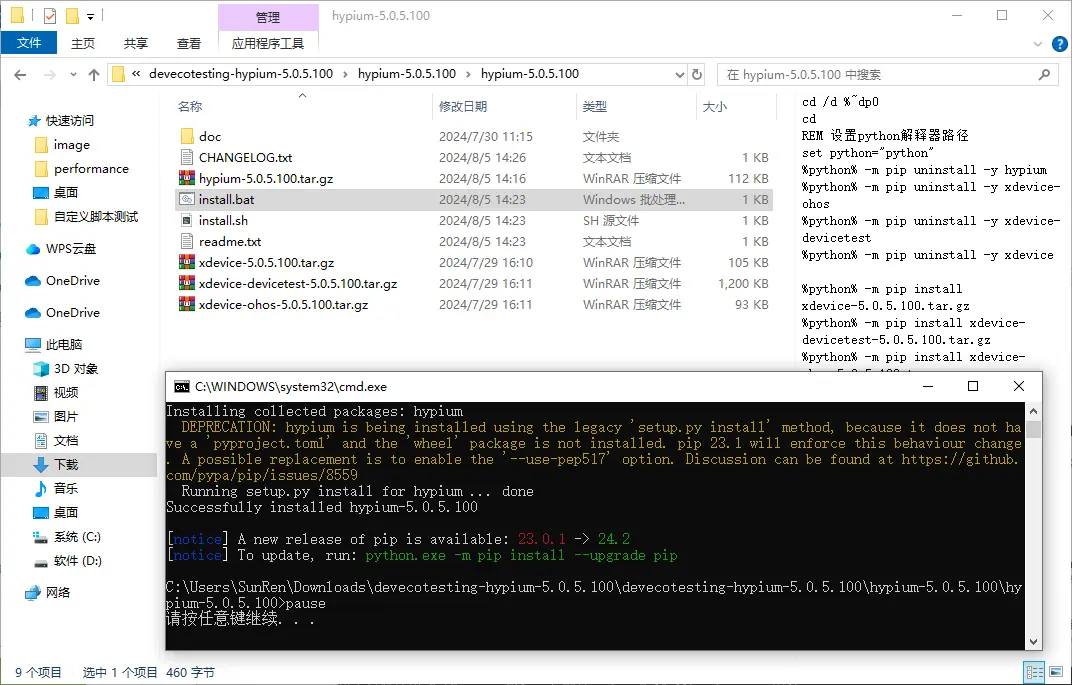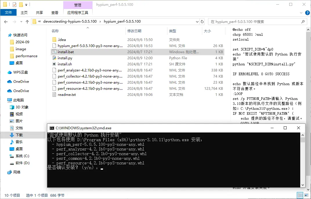 从本地下载目录中打开cmd窗口,运行 install.bat 脚本,跟随提示确认安装。