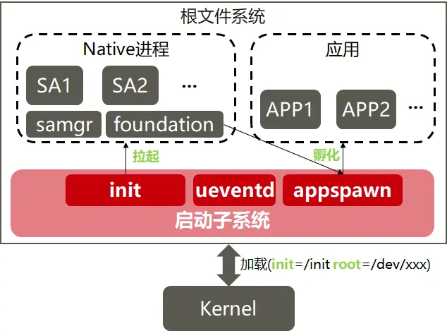 系统上电加载内核后,按照以下流程完成系统各个服务和应用的启动: