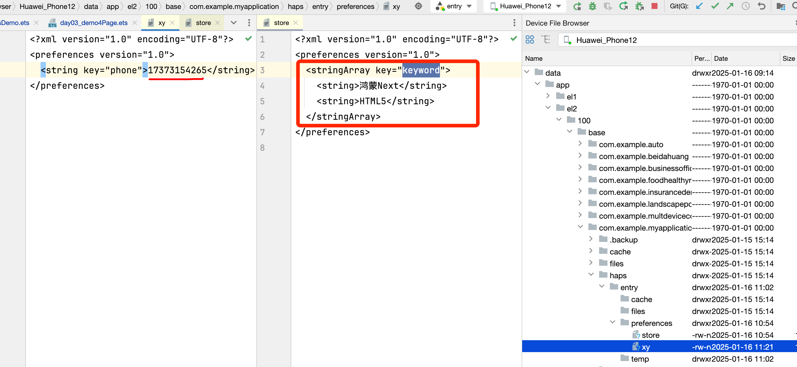 // 1.0 利用首选项api对store这个文件做一个新增数据:["鸿蒙","HTML5"]