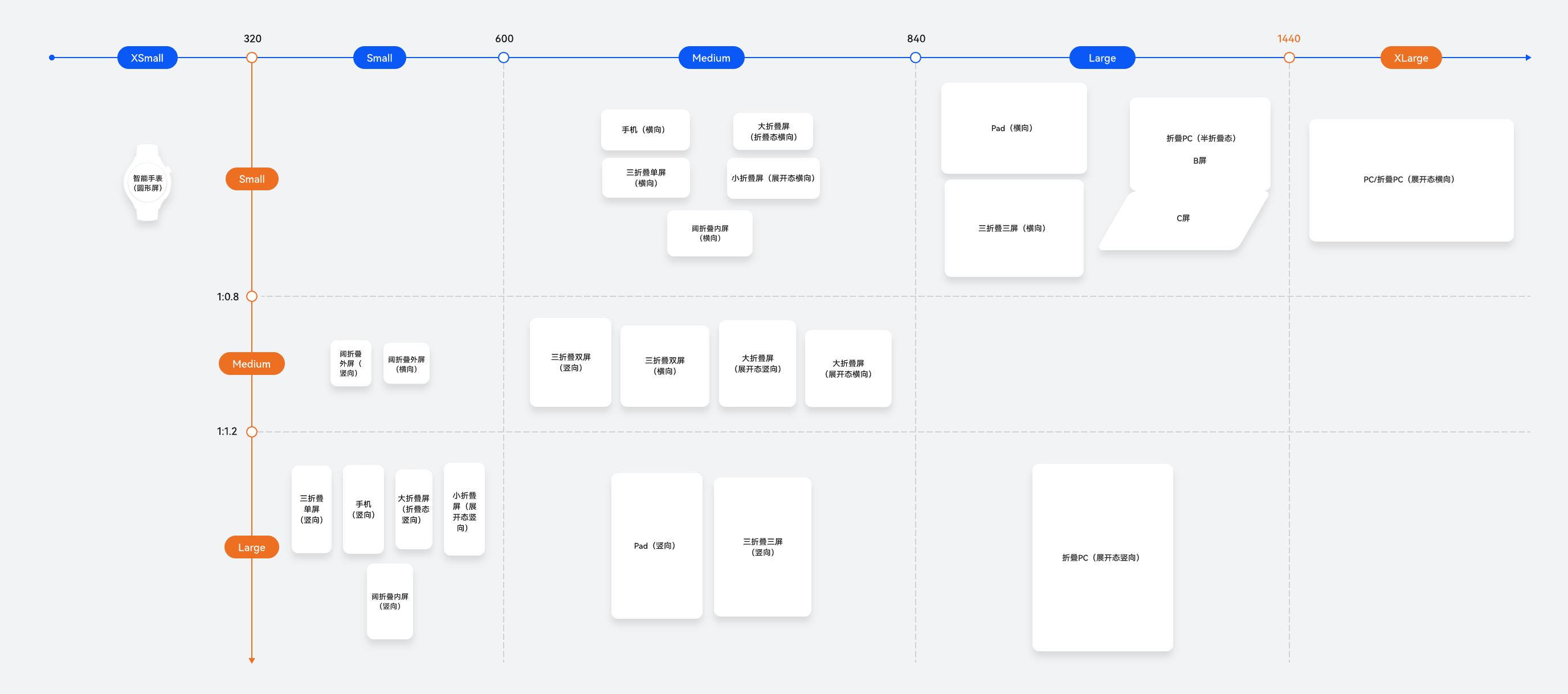 断点以应用窗口宽度为切入点,将应用窗口在宽度维度上分成了几个不同的区间,即不同的断点,在不同的区间下,开发者可根据需要实现不同的页面布局效果。