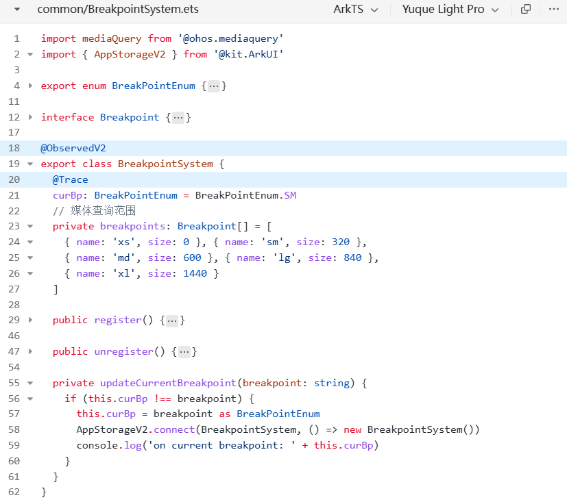 我们把媒体查询断点封装成工具类,放在 common下的 BreakpointSystem.ets 文件里。
