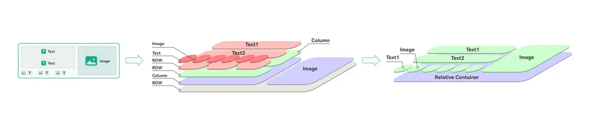 针对“HMOS世界” 中首屏的长列表,可以对ListItem进行布局优化,把线性布局修改为相对布局,就可以将最大嵌套层级从5层降低到2层。当进行列表循环渲染的时候,特别是当数据量大时,就能对页面性能产生一定的优化。当然这个例子还过于简单,优化空间是有限的;但是当列表元素较为复杂时,通过减少布局嵌套层级,减少过度绘制可以产生较大的性能收益。