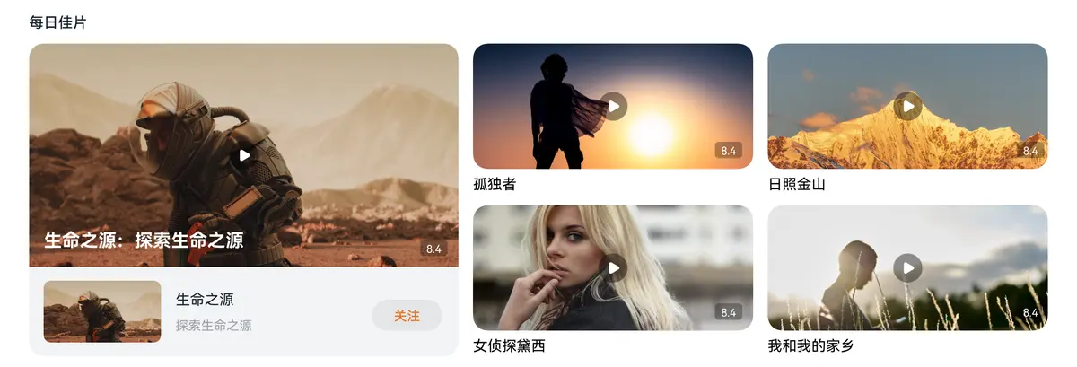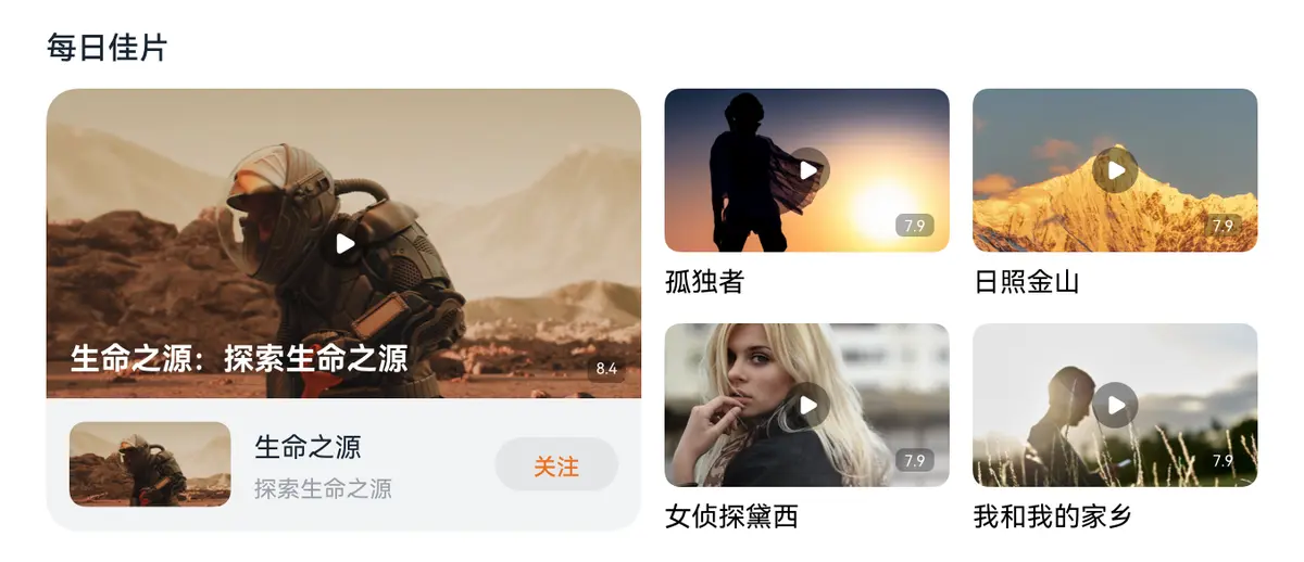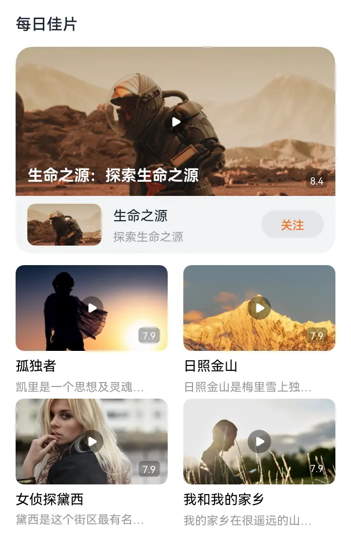 | 7 | 每日佳片 | 利用响应式布局的栅格布局,结合 Stack组件 和 Grid组件,设置aspectRatio属性实现缩放能力。 |