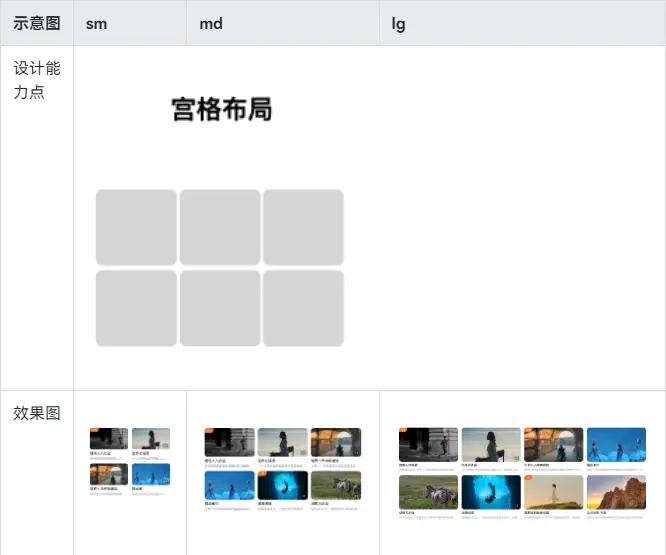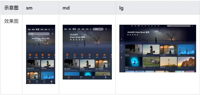 | 6 | 新片发布 | 网格容器,借助栅格组件能力监听断点变化改变列数,设置aspectRatio属性实现缩放能力。 |