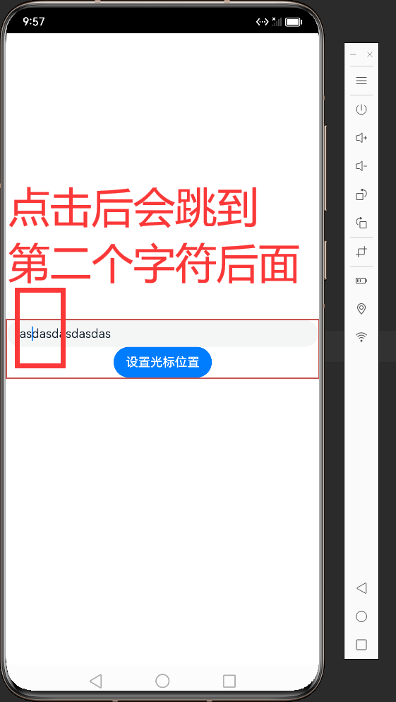 可以使用TextInputController动态设置光位置,下面的示例代码使用TextInputController的caretPosition方法,将光标移动到了第二个字符后。