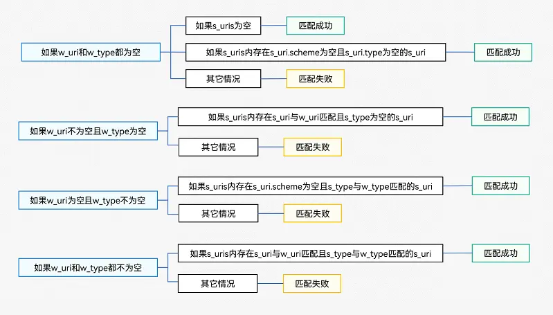 - 如果s_uri的scheme为空,当w_uri为空时匹配成功,否则匹配失败。