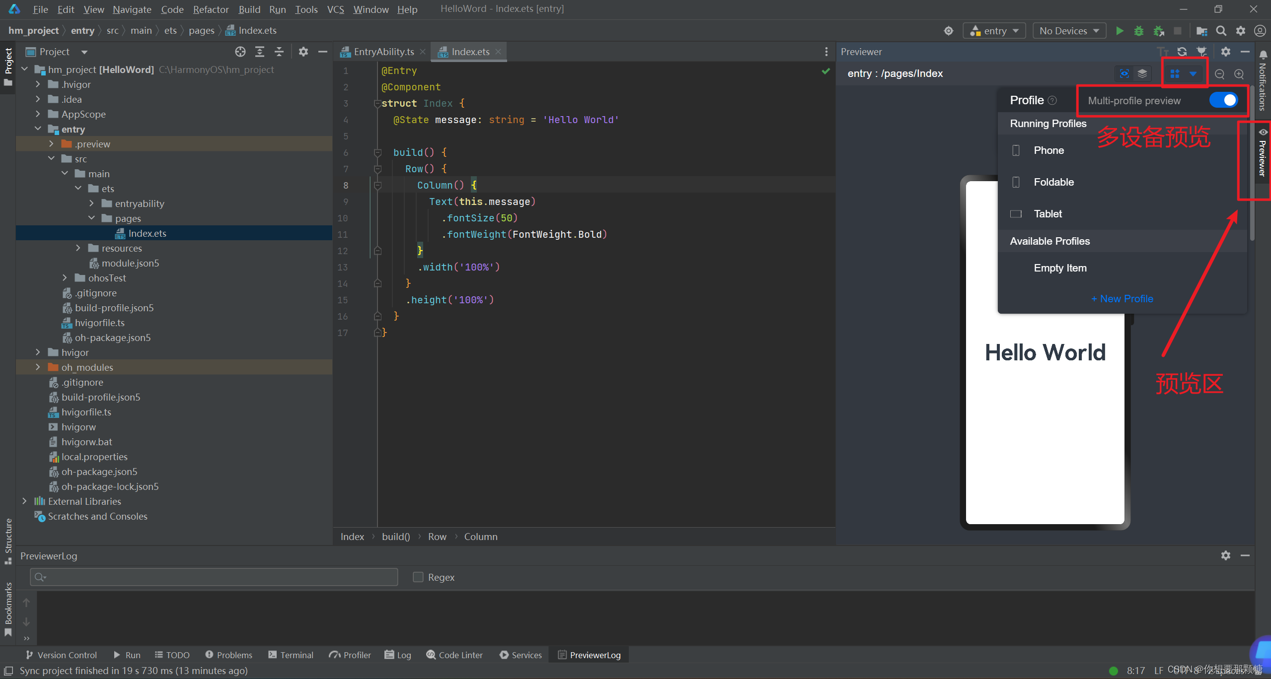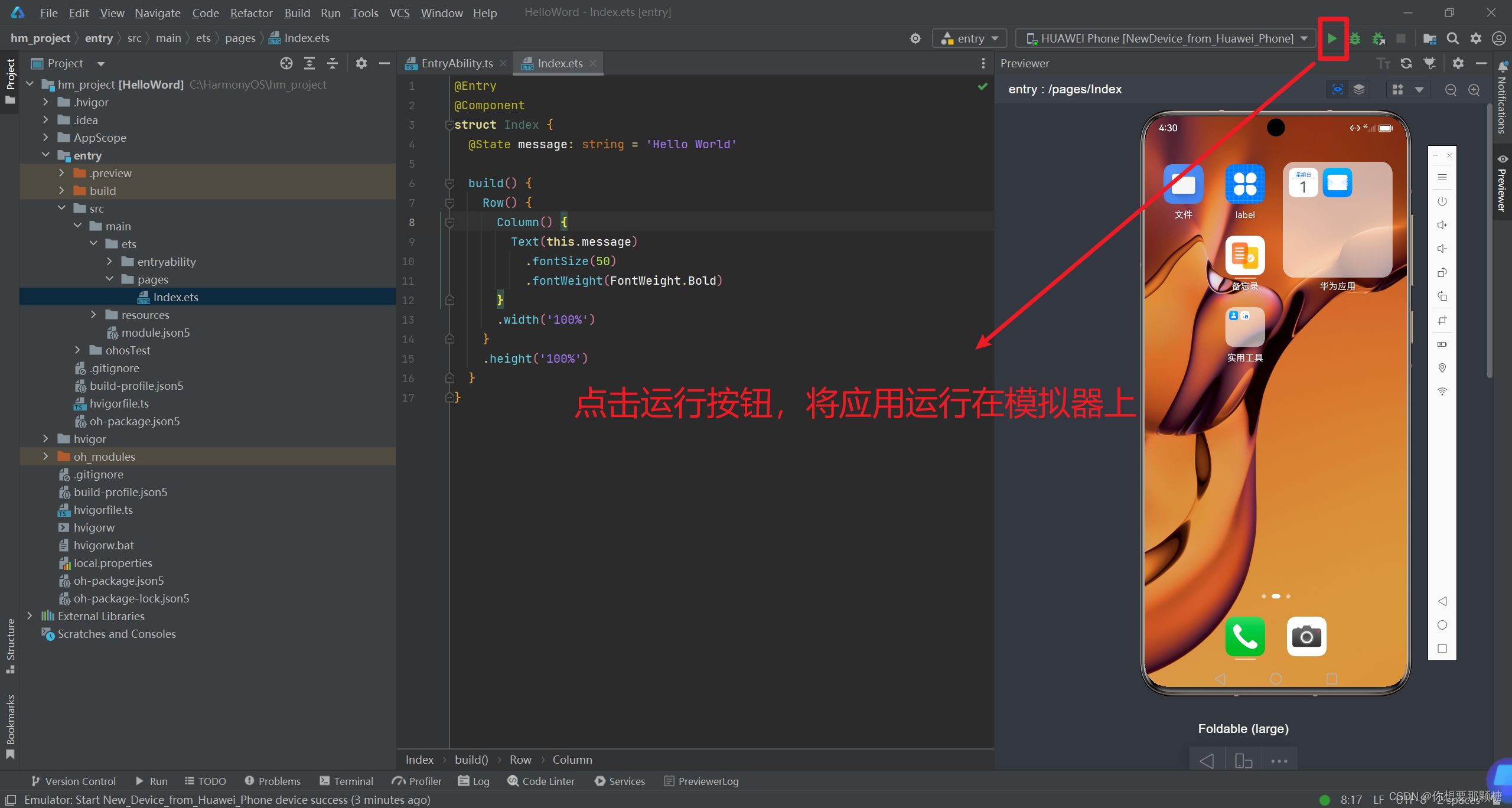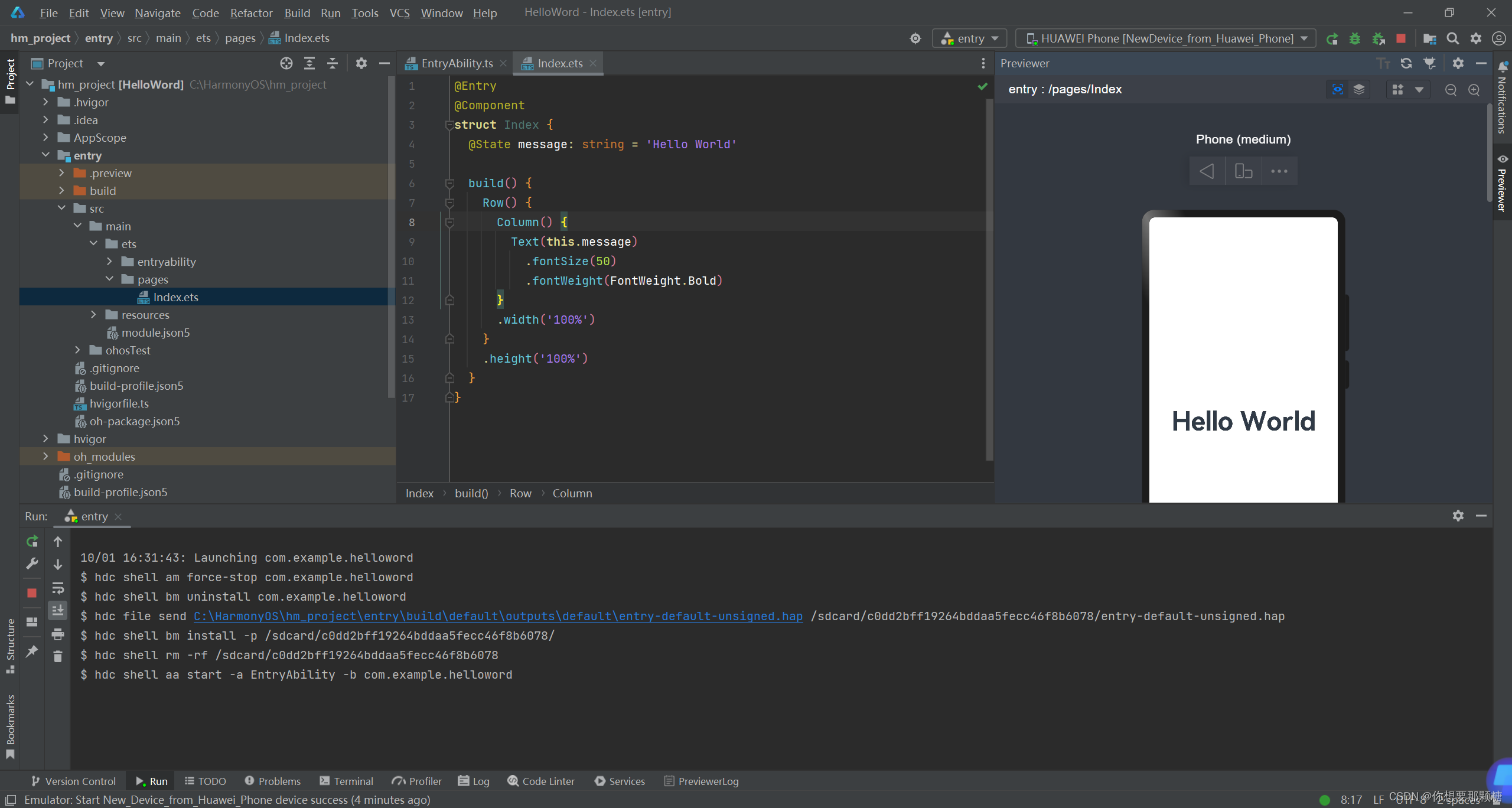 - entry是应用的主模块,存放HarmonyOS应用的代码、资源等。