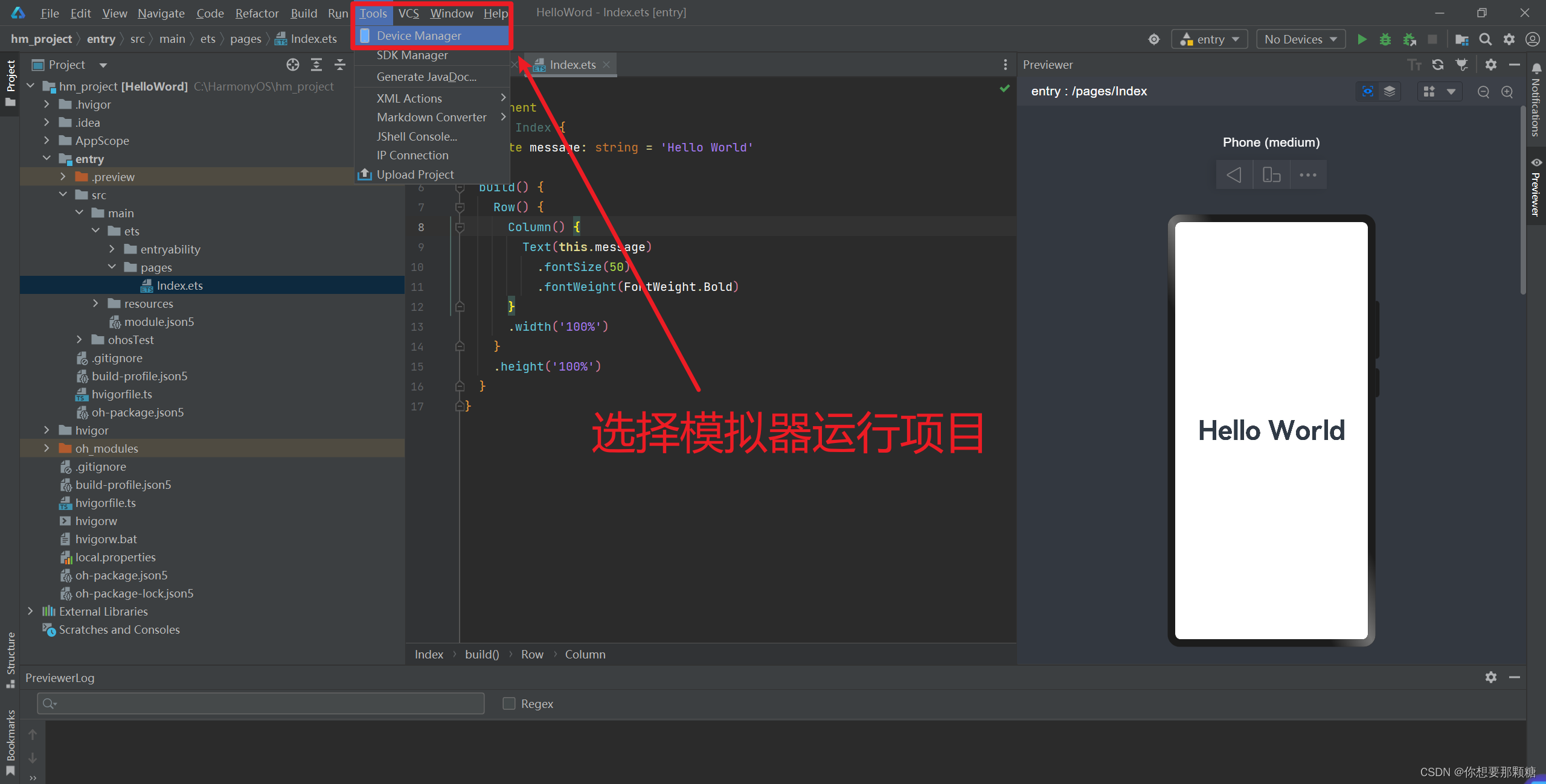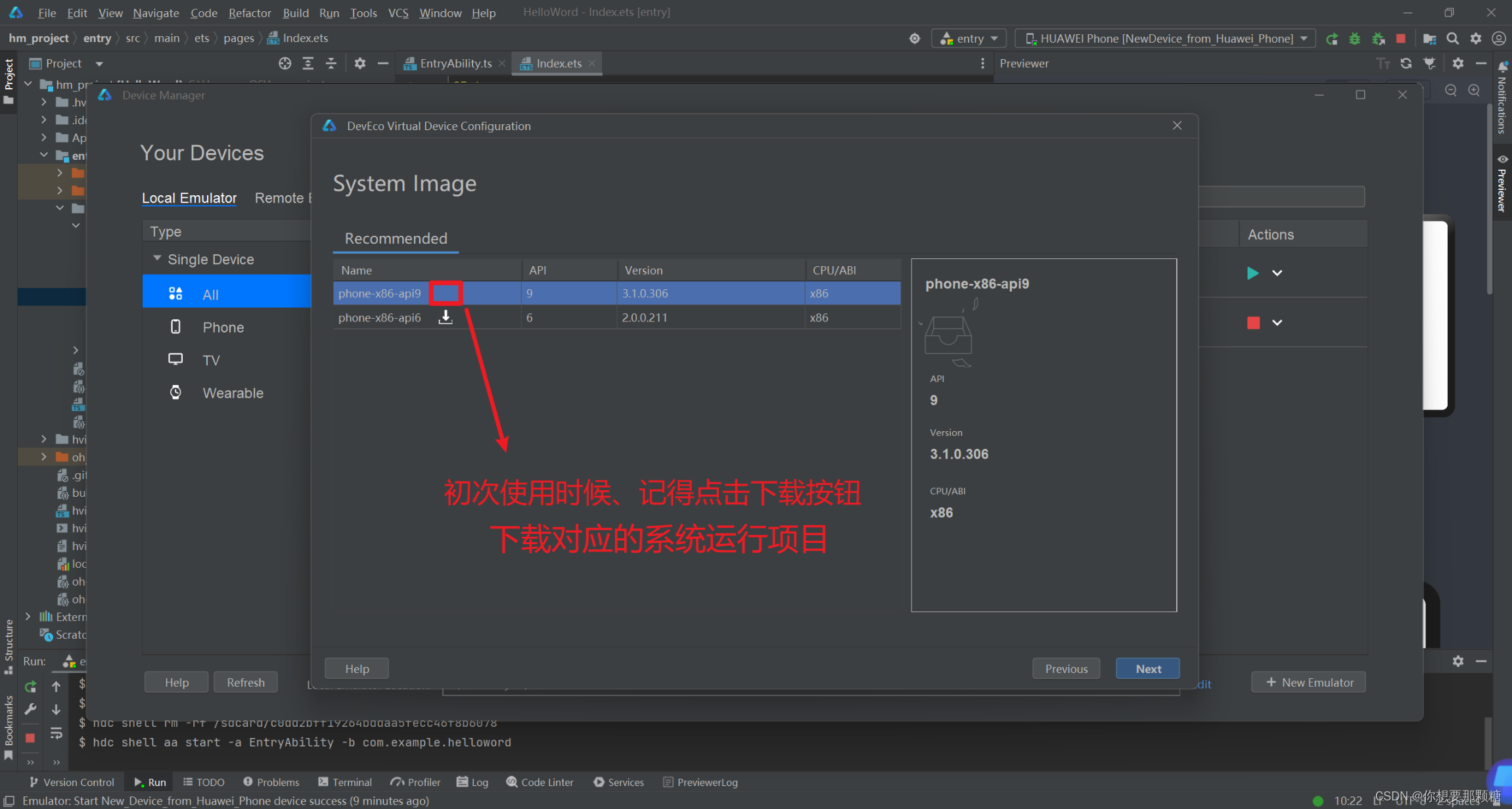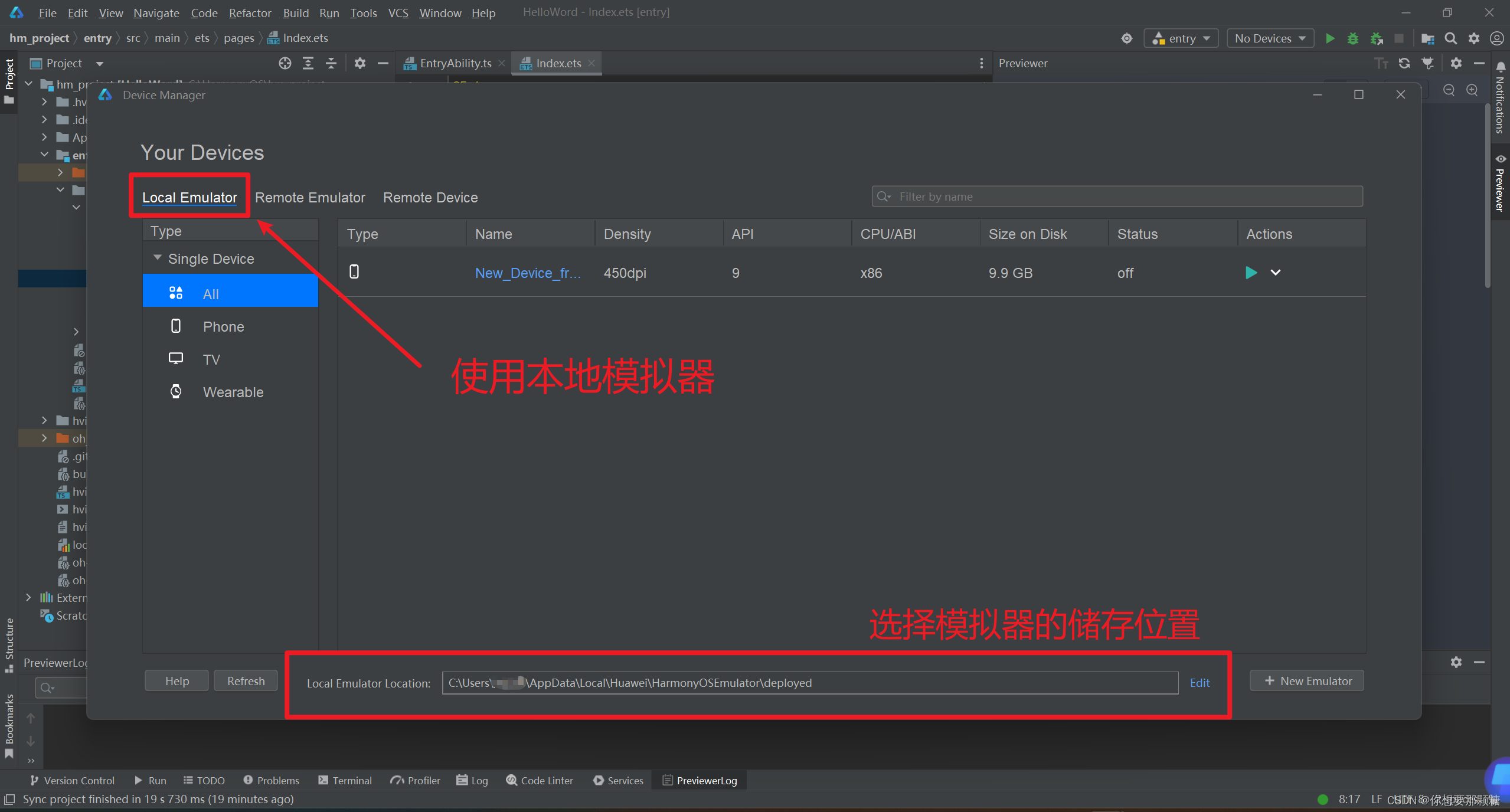 - entry是应用的主模块,存放HarmonyOS应用的代码、资源等。