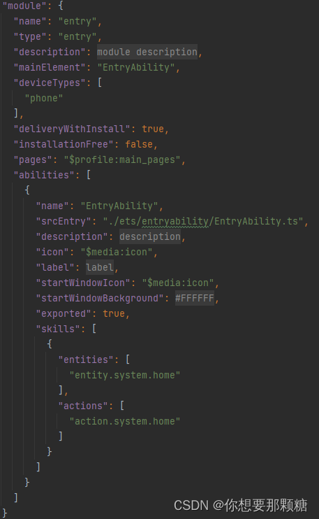 entry>src>main>module.json5是模块的配置文件,包含当前模块的配置信息。
