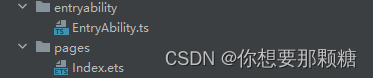 进入src>main>ets目录中,其分为entryability、pages两个文件夹。