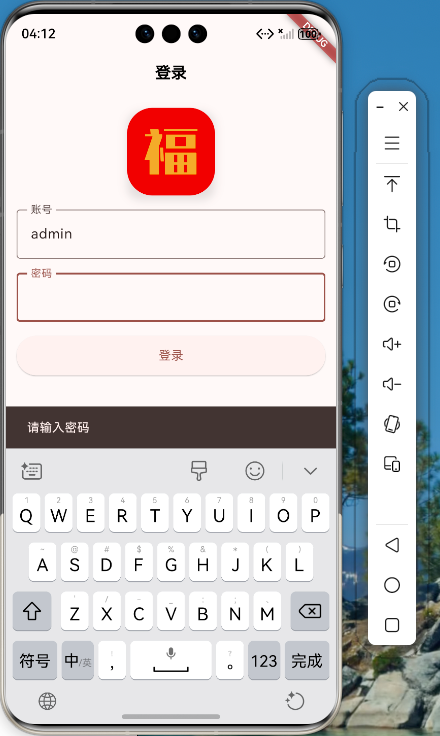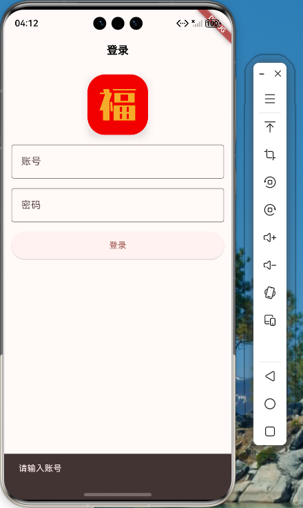 开发一个登录页面,页面包含着应用logo,账号密码输入框,登录按钮。
