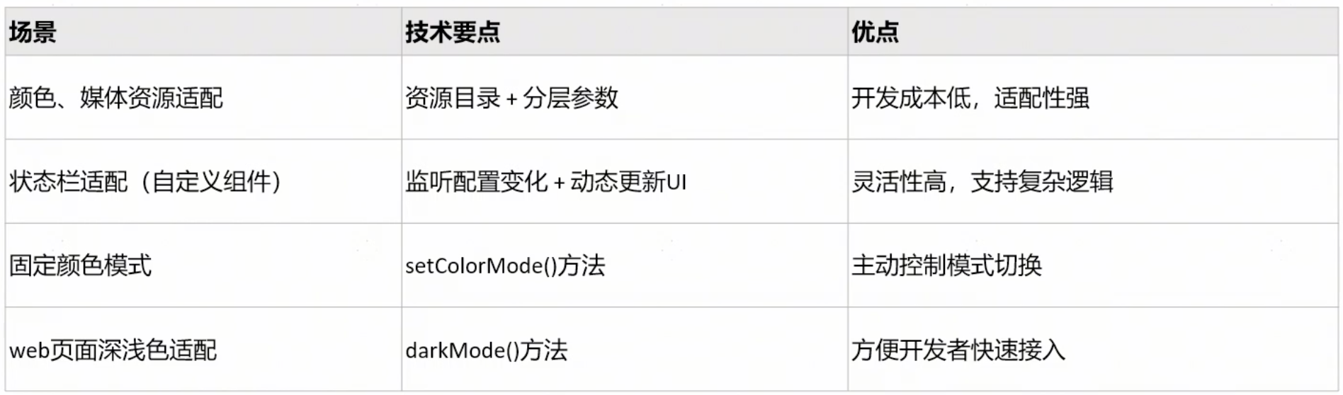 综上分析,深色模式适配内容如下表所示。