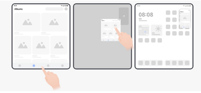 l 手势触发:应用全屏时用手指从屏幕底部向上滑至右上方热区,松开手后可开启悬浮窗模式,如下图所示。