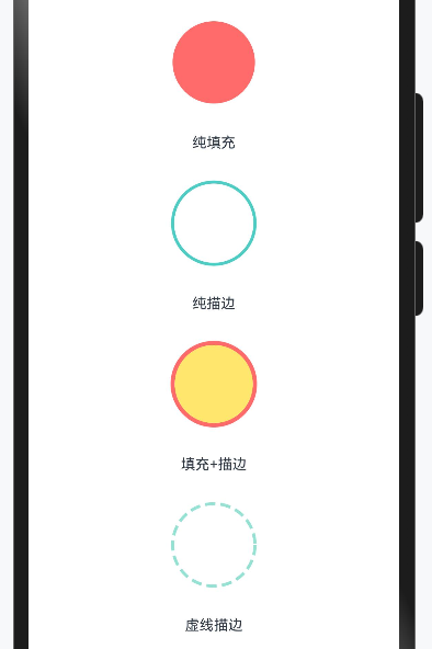 实际开发中,我们经常需要给圆形加上边框,或者只要边框不要填充: