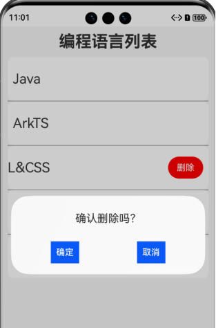 基于HarmonyOS 6 来实现编程语言列表的显示,同时删除某个编程语言。
