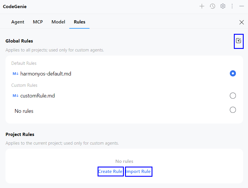 现在就在 CodeGenie 中配置 MCP 和 Rules,让 AI 兼具广阔的全栈视野与严谨的规范意识,在配置驱动下,构建高质量、高性能的鸿蒙应用。